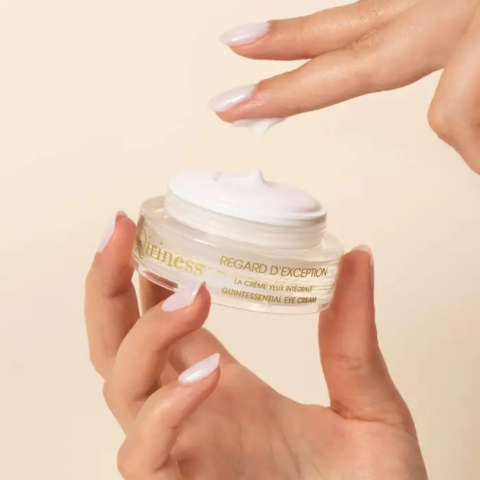 Крем містить 97% речовин натурального походження. Насичена, шовковиста, обволікаюча текстура крему з нелипким, нежирним фінішем для оптимального комфорту та захисту контуру очей.